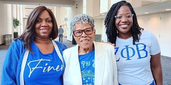 Look who managed to stop long enough to take a picture and all smiles with our grandmother of Juneteenth: Pictured - Soror Ball, and Dr. Bruner-Hill with Soror Opal Lee - all about Zeta Finer and Zeta Wisdom! ~ Thank you!