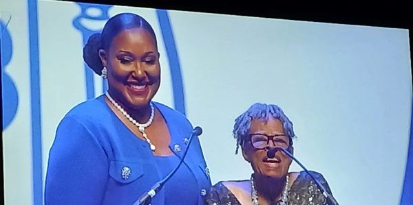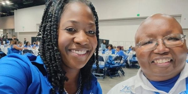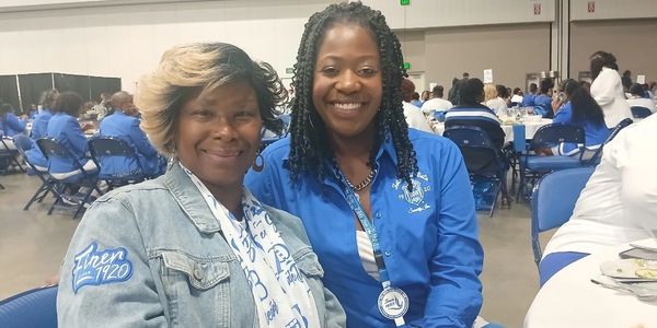True sisters in family, within our chapter, and in our sisterhood are enjoying the Boule' as first time attendees while we gather for lunch after a business session. All smiles and loving every second Sorors Kirsten Knight and Tonjala Worrell - Go ahead sisters, (Sisters - in - law) ~ Our chapter secretary and treasurer~ Yes!