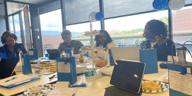 Blue and White family coming together service and helping our youth while participating in the Educating Children of Color Career Day at Colorado College in Colorado Springs, Colorado