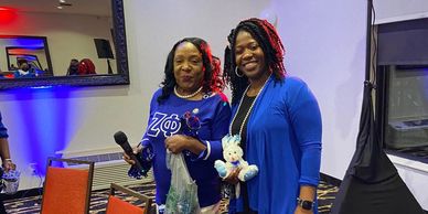 Chair Soror Ball and key note speaker Dr. Regina English pause for a photo during our social time