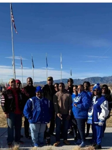 A few Sorors along with State Director Dr, Duncan, and our Sigma brother Van McGee, previous Colorado State Director, Phi Beta Sigma and member of Eta Nu Sigma Chapter Colorado Springs pose inside on the steps of the Denver capitol building